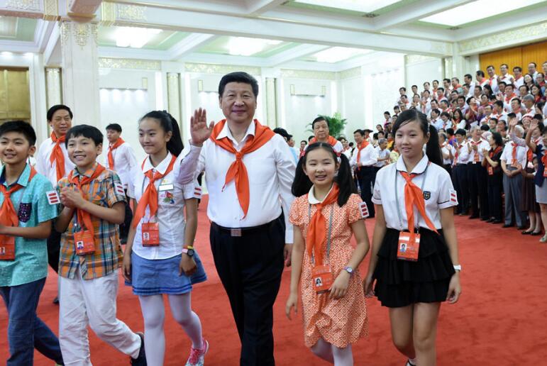 2015年6月1日,习近平在北京人民大会堂亲切会见中国少年先锋队第七次全国代表大会全体代表。新华社记者 王晔 摄